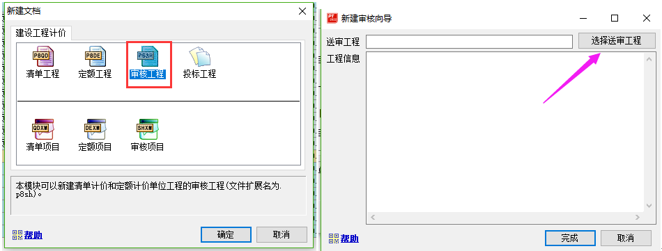 答:審核工程是需要在新建工程的時候選擇審核工程,然后選擇送審工程的。如下截圖所示: