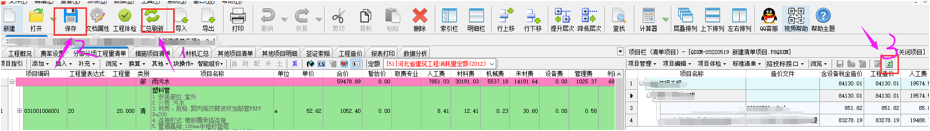 答:針對與p8qdxm的非單文件項目工程,它是跟單位工程數(shù)據(jù)聯(lián)動的。如果出現(xiàn)了數(shù)據(jù)沒有同步匯總,需要按照以下步驟操作。 第一步打開單位工程點擊匯總刷新,然后點擊保存。如果保存按鈕是灰顯,說明數(shù)據(jù)可能沒有變化會導(dǎo)致正常匯總不了??梢圆扇‰S便改動一下數(shù)據(jù)再改回的方法,在保存按鈕綠顯的狀態(tài)下點擊保存。所有單位工程都刷新保存了之后,關(guān)閉單位工程,最后一步就是回到項目工程中點擊重新提取數(shù)據(jù)。 如下截圖所示: