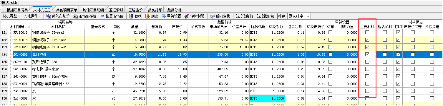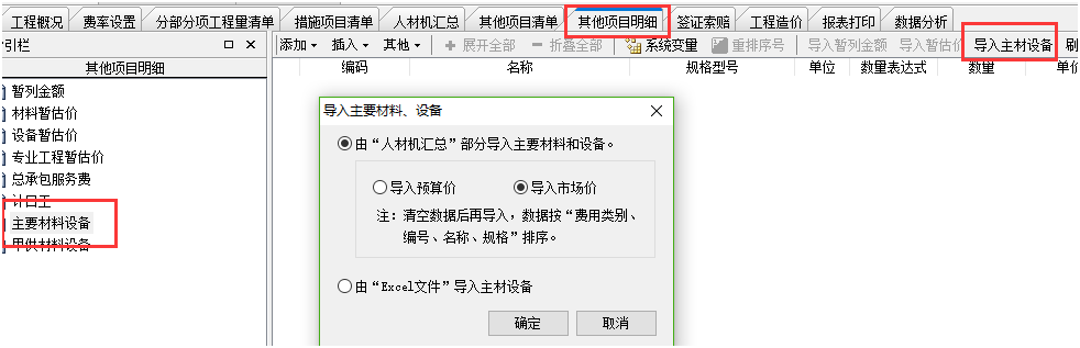 答:人材機界面勾選主要材料標(biāo)志后,切換到其他項目明細(xì)界面,點擊導(dǎo)入主材設(shè)備,在這個界面可以上下行移動排序。