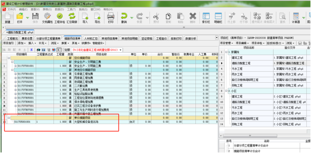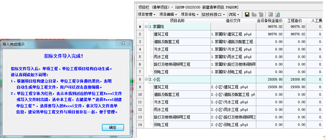 項目文件中含有的所有單位工程的內(nèi)容實現(xiàn)了一鍵導(dǎo)入,包括了分部分項清單、措施項目清單和其他項目清單部分。 需要注意:EXCEL文件中需要有單項工程費匯總表及其對應(yīng)的單位工程excel數(shù)據(jù)。(主要是為了保證按照相應(yīng)的結(jié)構(gòu)建立生成造價文件)